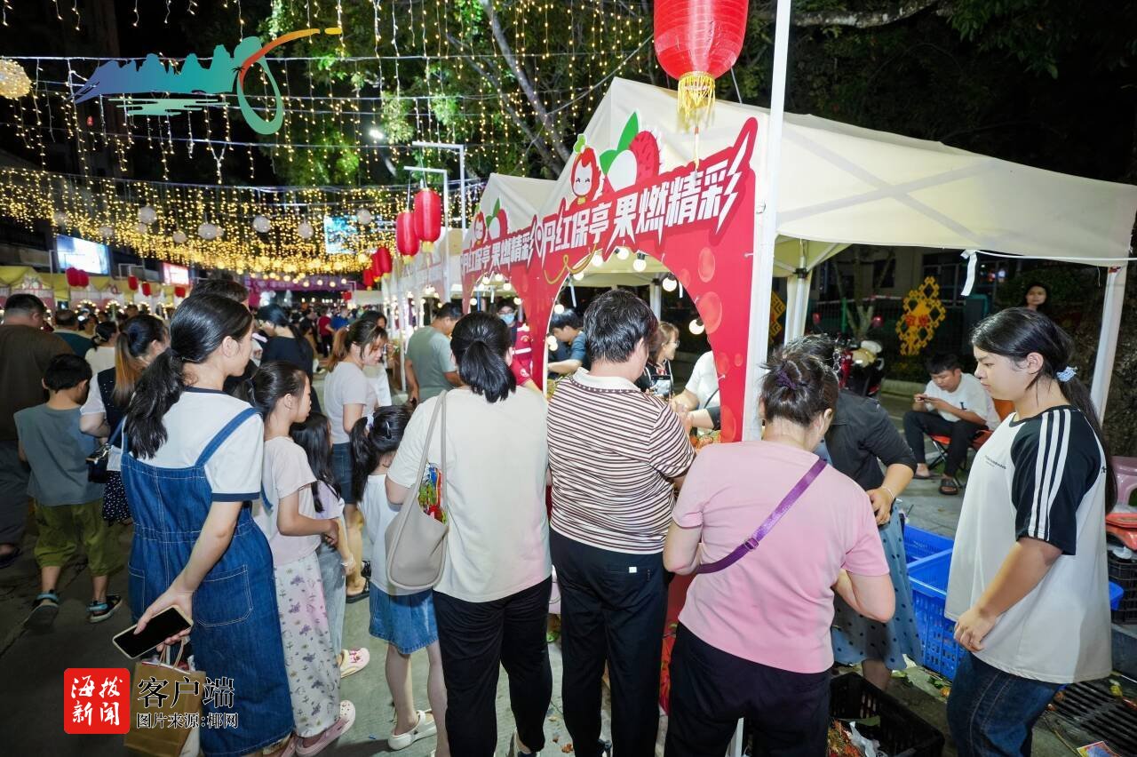 (椰网/海拔新闻记者 熊文颖)7月11日晚,“丹红保亭 果燃精彩”2025年海南保亭黎族苗族自治县红毛丹火红丰盈季(以下简称“丰盈季”)在七仙广场路火红丰盈一条街举办,活动继续至7月12日。此次活动以“丹红保亭 果燃精彩”为主题,为游客带来一场集生果盛宴、文明体会、爱好互动于一体的夏天狂欢。
